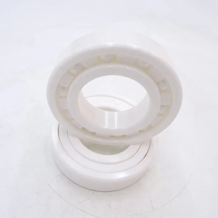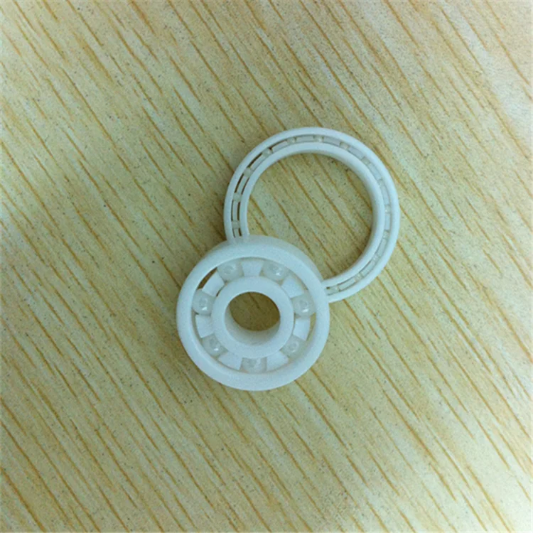 Full ceramic or hybrid ceramic bearings’ retainer are usually made of plastic POM, Nylon, or high polymer material PTFE, PEEK.